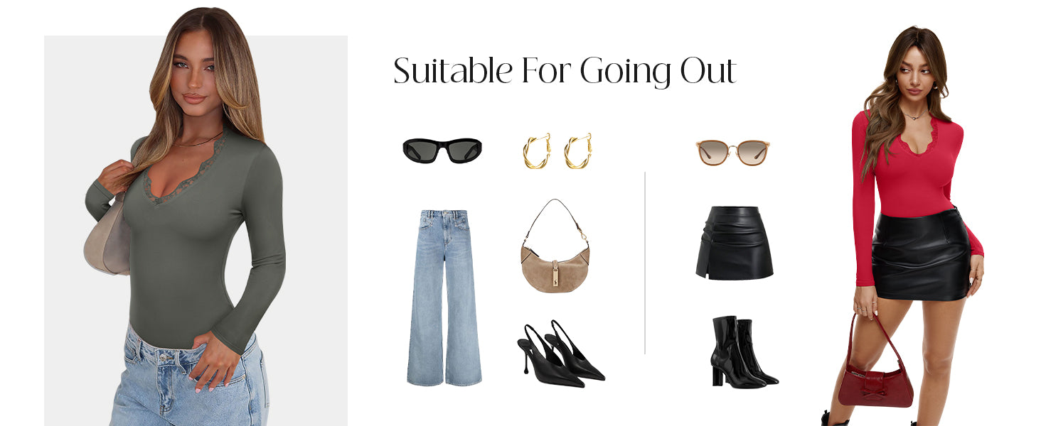 - Matching & Occasions: This fashion lace v neck long sleeve body suits womens is great for daily life, going out, streetwear, shopping, vacation,party, club, weekend gathering, holiday outfit,country concert outfits.Long sleeve lace bodysuit classic style pairs perfectly with your jeans, shorts, skirts or a blazer, jacket, coat for daily, wearing alone or layering.Embrace your charm this fall,winter and spring with a sexy lace v neck bodysuit long sleeve tops
