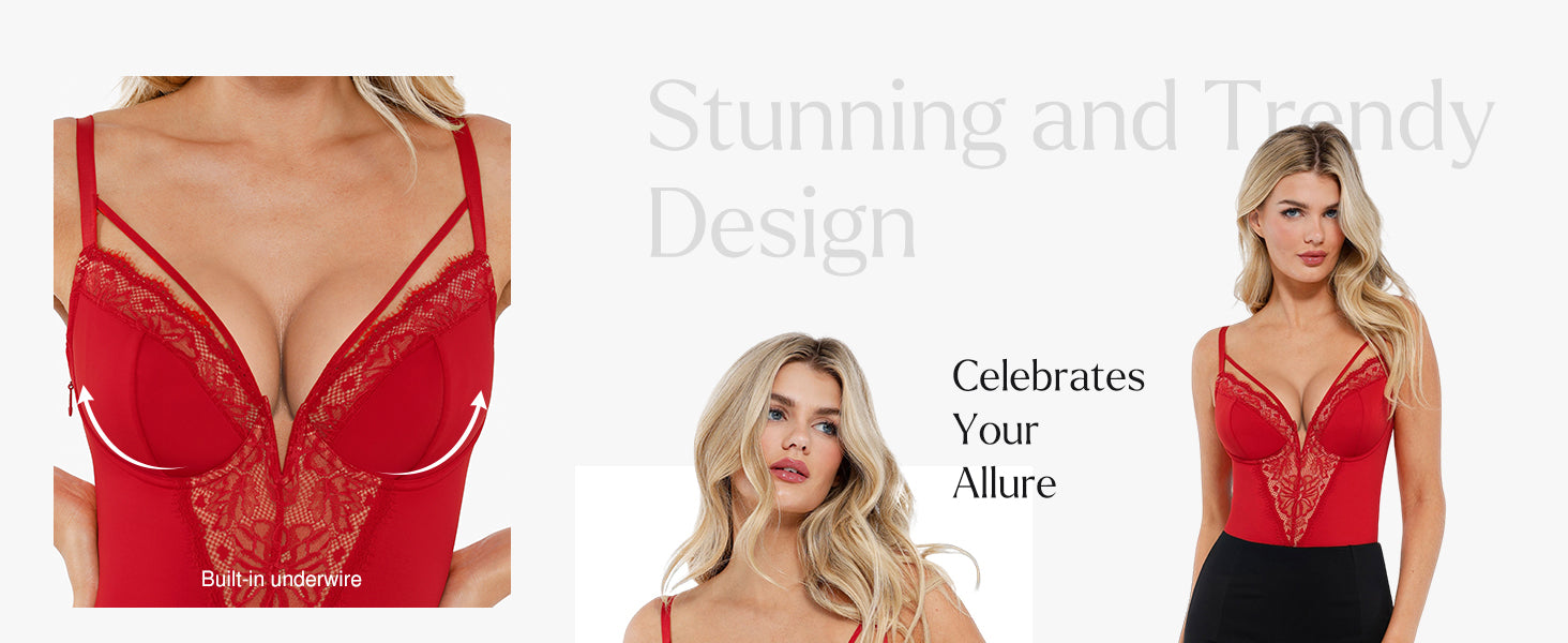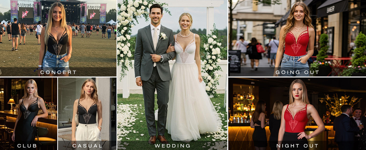 - Romantic Lace Details and Functional Support: Our lace body suits womens are equipped with built-in underwire to support the chest.The lace detailing adds a delicate touch, while the V-neck hollow design offers a refined look.It's fit for a night out, a wedding guest dressy, club outfit, dating, bachelorette outfit for the bride, and so on.