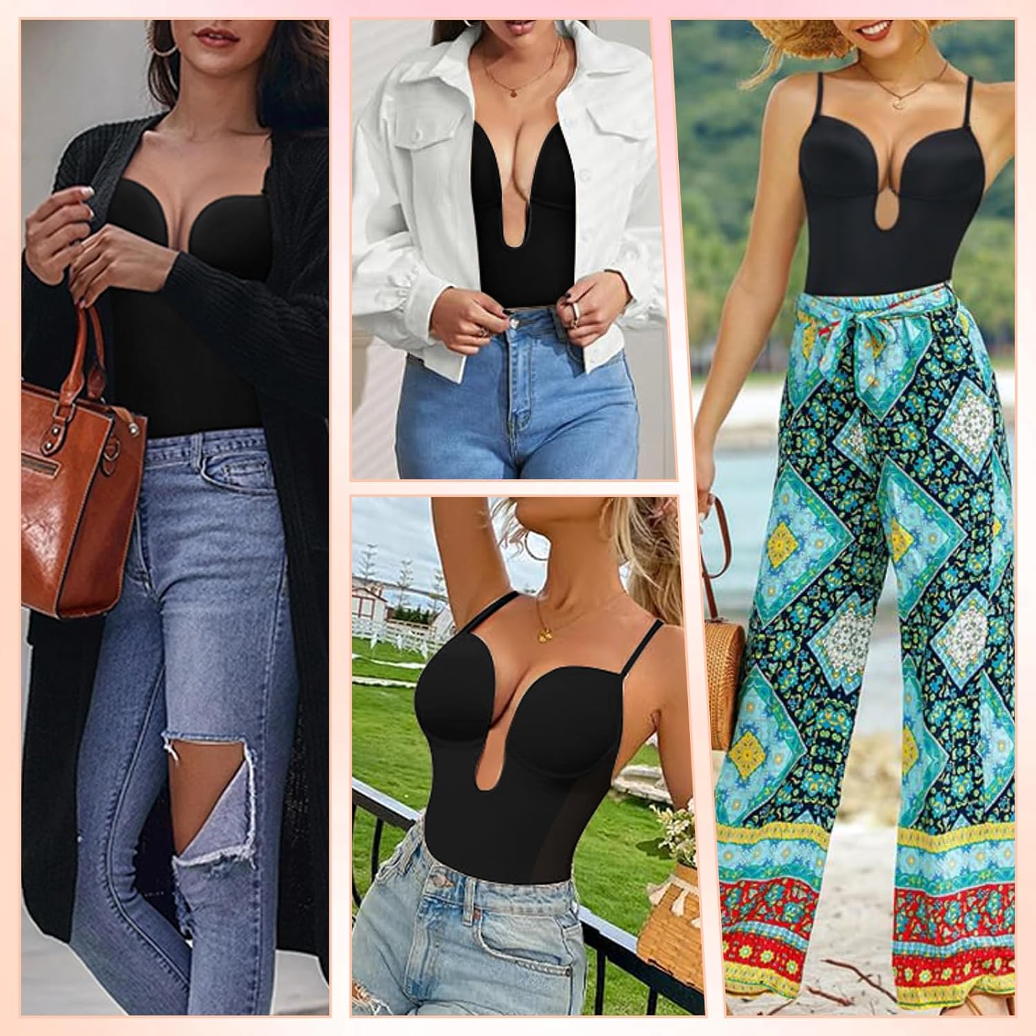 Body Shaper for Women Tummy Control U Plunge Backless Full Body Shapewear Mid Thigh Mesh strapless Bodysuit Top